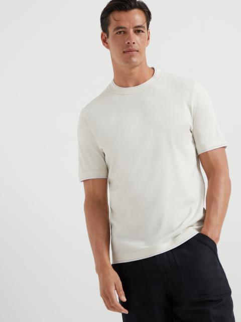 Cotton jersey crew neck T-shirt with logo and faux-layering