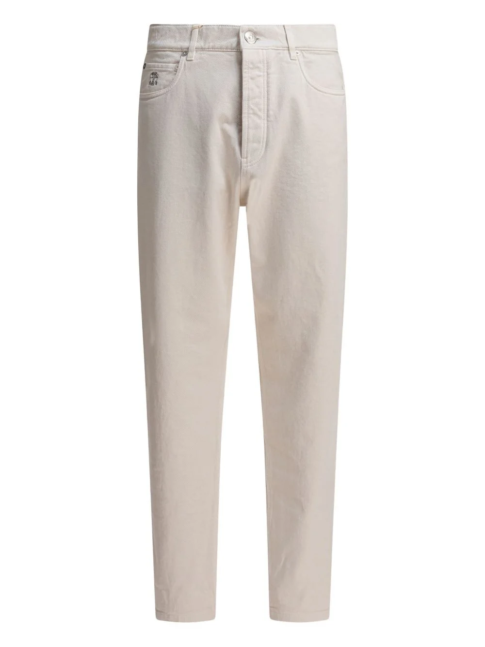 logo-embroidered cotton trousers Highlights - Off-white - Cotton - Embroidered detail - Five-pocket styling - Button fly Made in Italy Composition Cotton 100% Washing instructions Read Manufacturer Guidelines