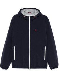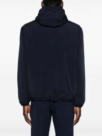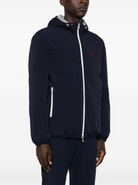 navy blue shell padded design front two-way zip fastening branded zip puller slouchy drawstring hood long sleeves elasticated cuffs embroidered logo at the chest front zip fastening pockets multiple internal slip pockets full lining elasticated hem Size & Fit Model Measurements: Height: 1.86 m Bust/Chest: 91.0 cm Hips: 92.0 cm Waist: 73.0 cm Model wears size L Fabric and Care Designer Style ID: MM40A7431GCLR76 Designer Colour: CLR76 NAVY Composition: Outer: Polyurethane 6%, Polyamide 86%, Elastane 8%; Lining: Nylon 100%, Cotton 100%, Polyester 100% Washing instructions: Dry Clean Only Made in Italy