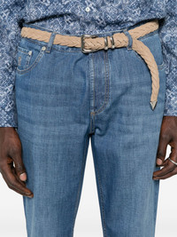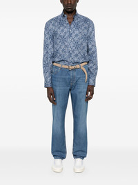 logo-embroidered jeans Highlights - Indigo blue - Button fly fastening - Classic five pockets - Belt loops - Logo patch to the rear Made in Italy Composition Lining: Cotton 100% Outer: Calf Leather 100%, Cotton 100% SIZE & FIT Model measurements Height 6 ft 0 in(1.84 m) Bust/Chest 37.79 in(96 cm) Hips 37 in(94 cm) Waist 31.49 in(80 cm) FittingInformation Designed with a straight leg, these jeans allow for an unrestricted and comfortable fit over the leg Sturdy and hard-wearing, this denim piece offers no stretch