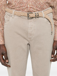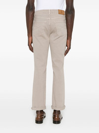 logo-embroidered jeans Highlights - Ash grey - Button fly fastening - Classic five pockets - Belt loops - Logo patch to the rear Made in Italy Composition Outer: Calf Leather 100%, Cotton 99%, Elastane 1% Lining: Cotton 100% SIZE & FIT Model measurements Height 6 ft 0 in(1.84 m) Bust/Chest 37.79 in(96 cm) Hips 37 in(94 cm) Waist 31.49 in(80 cm) FittingInformation Designed with a straight leg, these jeans allow for an unrestricted and comfortable fit over the leg Constructed from stretch denim, this piece offers a stretch fit with durability