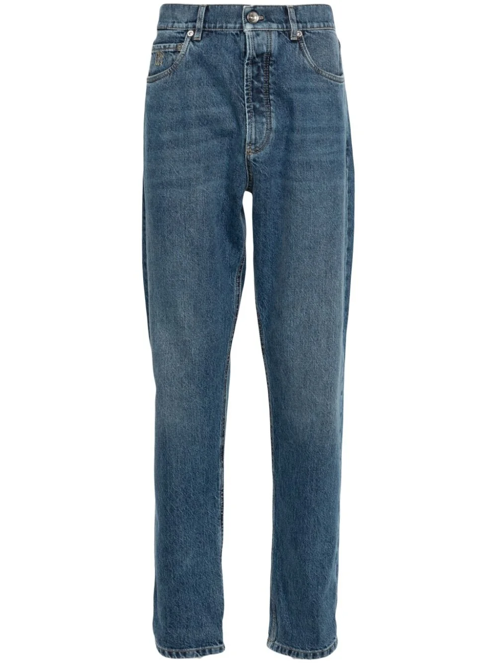 logo-embroidered jeans Highlights - Indigo blue - Cotton - Washed denim - Embroidered logo - Rivet detailing - Whiskering effect - Applique logo - Mid-rise - Concealed fly and button fastening - Belt loops - Straight leg - Classic five pockets Made in Italy Composition Outer: Cotton 100%, Calf Leather 100% Lining: Cotton 100% SIZE & FIT Model measurements Height 6 ft 1 in(1.85 m) Bust/Chest 35.82 in(91 cm) Hips 37.79 in(96 cm) Waist 29.13 in(74 cm) FittingInformation Designed for a slim tapered leg, these jeans offer a close fit that sits just away from the leg with a closer fit towards the ankle Sturdy and hard-wearing, this denim piece offers no stretch This piece fits true to size – take your usual size