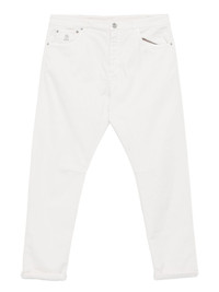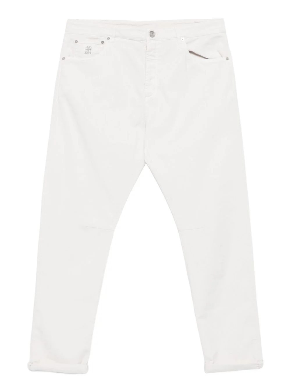 logo-plaque five-pocket jeans Highlights - White - Cotton - Five-pocket styling - Button fly - Cuffed hems Made in Italy Composition Outer: Calf Leather 100%, Cotton 99%, Spandex/Elastane 1% Lining: Cotton 100% Washing instructions Machine Wash