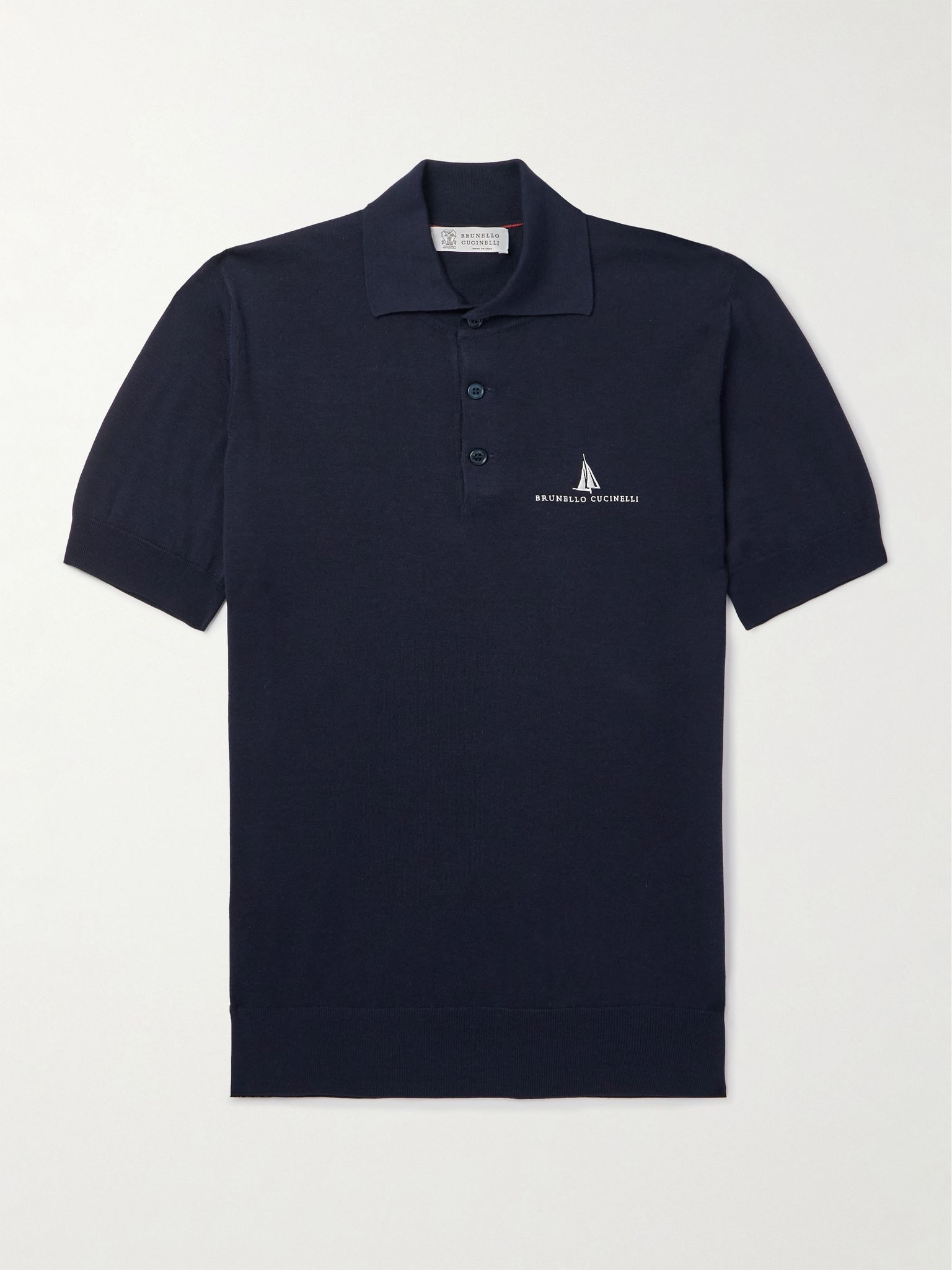Brunello Cucinelli's polo shirt is embroidered with a sailboat and the brand's logo. It's knitted from a silk and cotton-blend and fastens with shell buttons. Size & Fit - Fits true to size. Take your normal size - Designed for a slim fit - Fine knit - Model is shown wearing an IT 48 - Model measures: chest 38"/ 96cm, height 6'1"/ 185cm Details & Care - Navy silk and cotton-blend - Button fastenings - 62% silk, 38% cotton - Hand wash - Shell: Vietnam