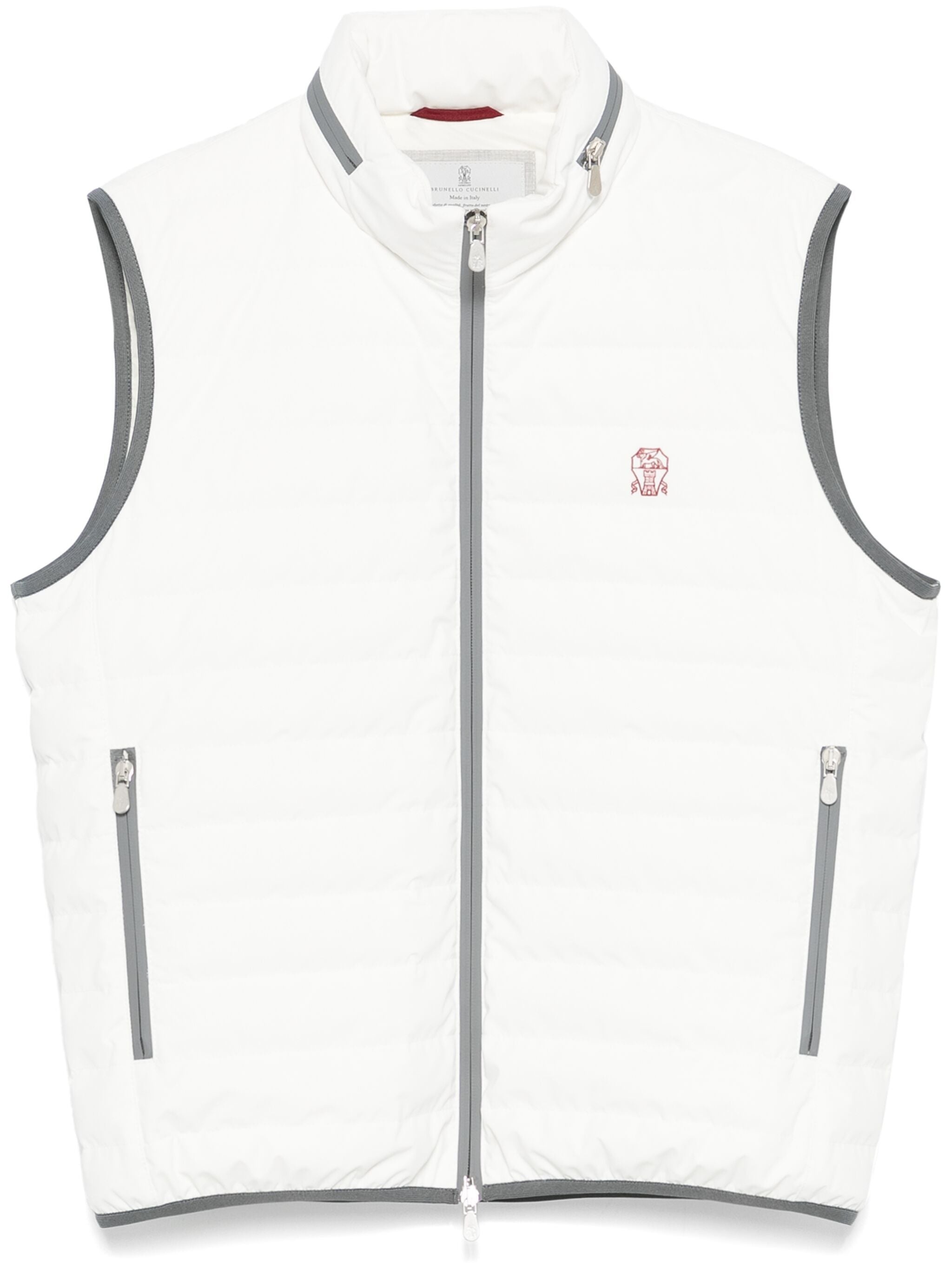 ecru front zip fastening concealed hood sleeveless two side zip-fastening pockets - Color: NEUTRALS - Made in: Italy - Designer Style ID: MM49A7460G C1085 Composition and care Lining Composition Nylon: 100.0%, Outer Composition Polyamide: 83.0%, Lining Composition Polyamide: 88.0%, Lining Composition Goose Down: 90.0%, Outer Composition Elastane: 17.0%, Lining Composition Elastane: 12.0%, Lining Composition Goose Feather: 10.0%