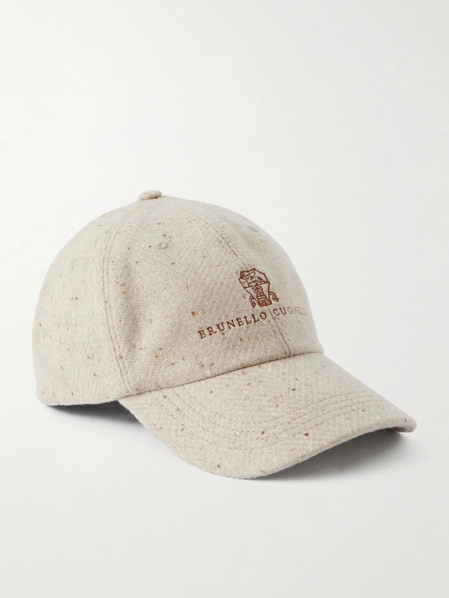 Brunello Cucinelli's emphasis on quality fabrics and Italian craftsmanship ensures even its more casual pieces are a cut above the rest. This baseball cap has been made in Italy from a wool and cashmere-blend and is embroidered with the label's crest and logo. Details & Care - Cream melange wool and cashmere-blend - 96% wool, 4% cashmere
