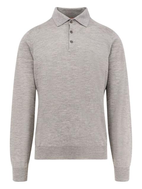 long-sleeve button polo shirt Highlights - Grey - Long sleeves - Polo collar - Button fastening - Three buttons Made in Italy Composition Cashmere 70%, Silk 30% Washing instructions Read Manufacturer Guidelines
