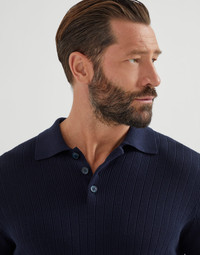Lightweight and cozy, Brunello Cucinelli knitwear enhances the contemporary look of this long sleeve polo shirt thanks to refined yarns and workmanship. Made of pure cotton, this ultra-lightweight garment is enriched with a honeycomb texture that creates a sense of movement and a three-dimensional effect. The silhouette offers regular proportions, completed by the shirt-style collar with buttons. MATERIALS Manufacturing of the pure cotton yarn enhances the qualities of the natural fibers and makes the garment lightweight and comfortable to wear. DETAILS Shirt-style collar with button opening Regular shoulder Rib knit cuffs and bottom band Special workmanship 100% COTTON