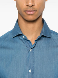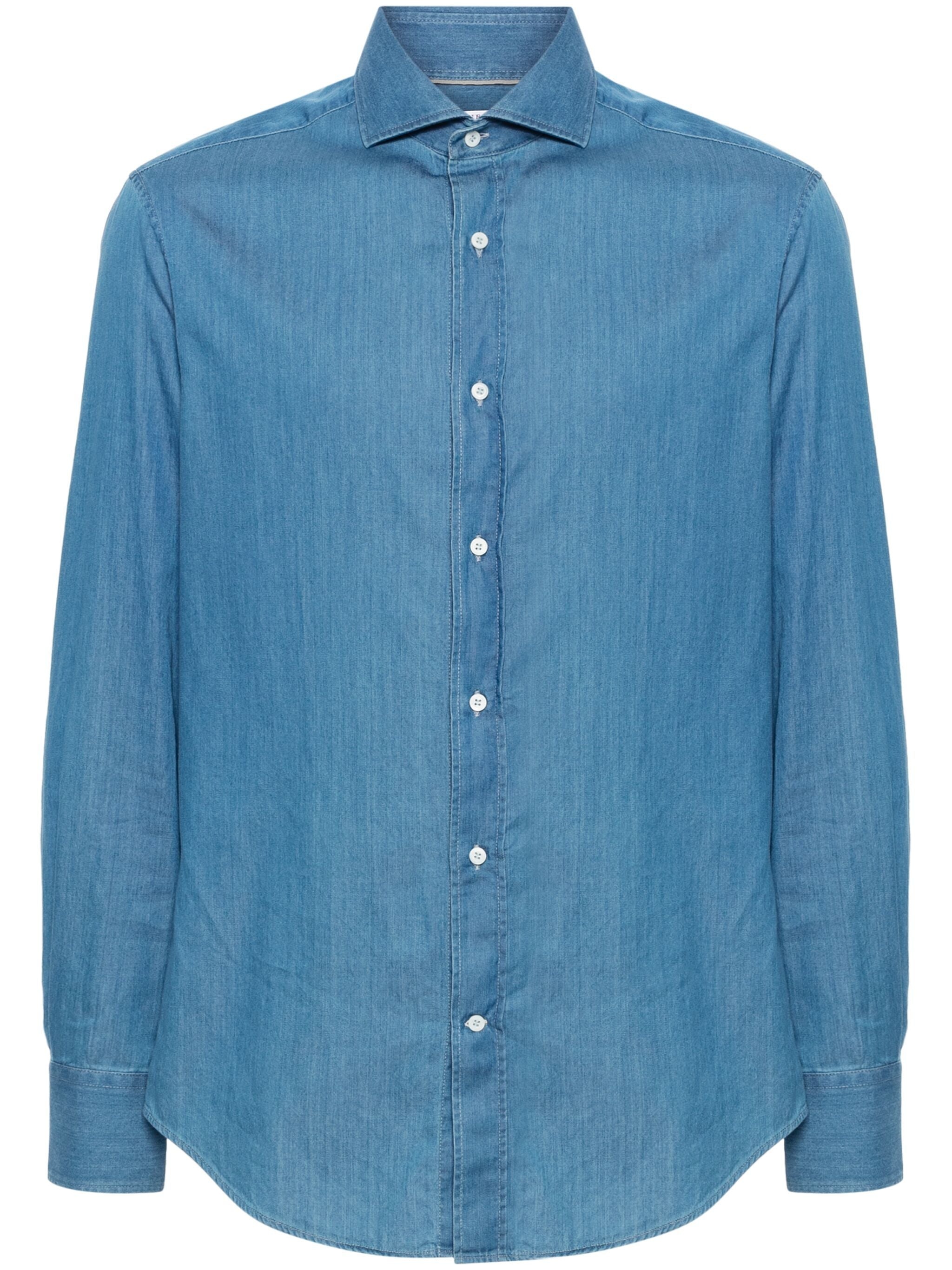steel blue cotton chambray spread collar long sleeves buttoned-cuff sleeves curved hem front button fastening - Color: BLUE - Made in: Italy - Designer Style ID: MR6831718 C001 Composition and care Cotton: 100.0%