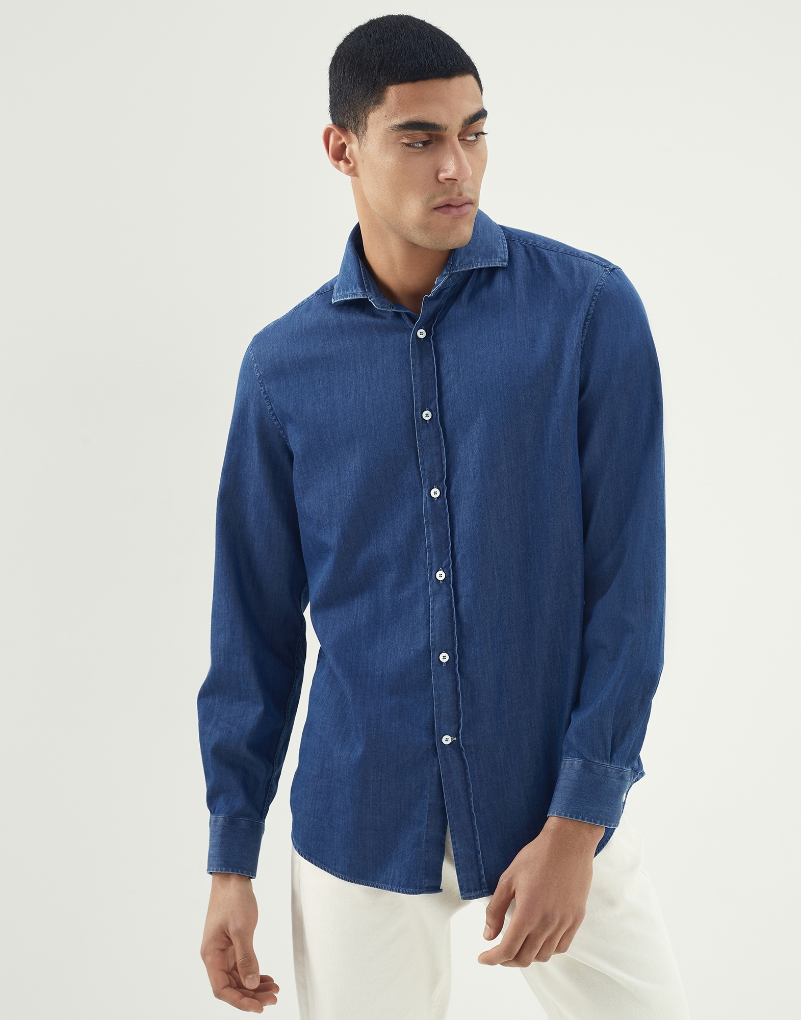 The sporty flair of lightweight cotton denim lends a casual touch to the classic and versatile style of this spread collar shirt. The easy fit is characterized by regular, rather straight lines and has a slightly shorter length than other fits, making it ideal to wear over your trousers for casual styling. MATERIALS The pure cotton denim is characterized by a balanced weight that makes this garment comfortable to wear, particularly in warmer weather. DETAILS Button closure Spread collar Button cuffs Easy fit 100% COTTON