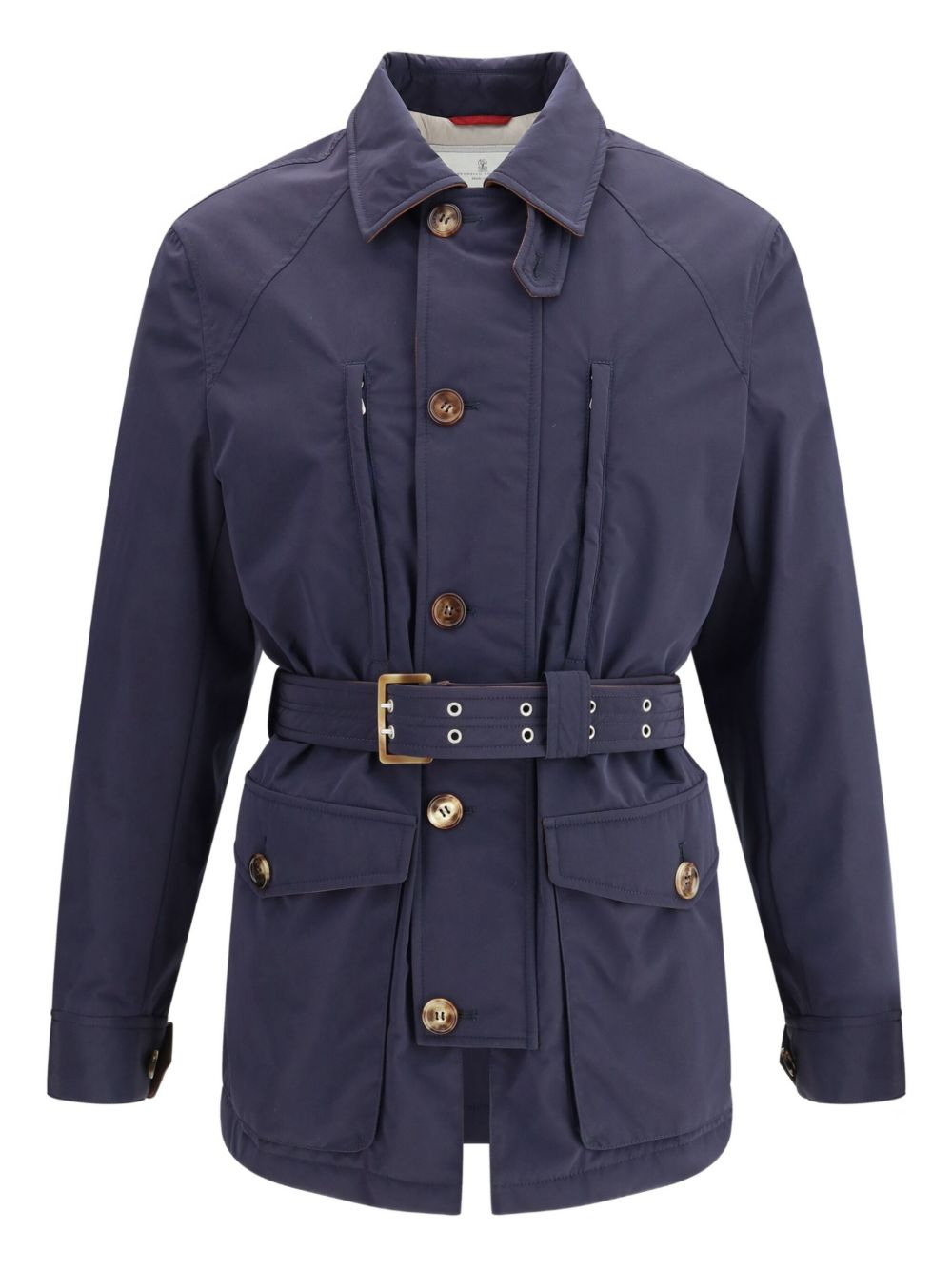 belt-waist shirt jacket Highlights - Blue - Button fastening - Flap pockets - Welt pockets - Belted waist Made in Italy Composition Polyester 70%, Nylon 30% Washing instructions Read Manufacturer Guidelines