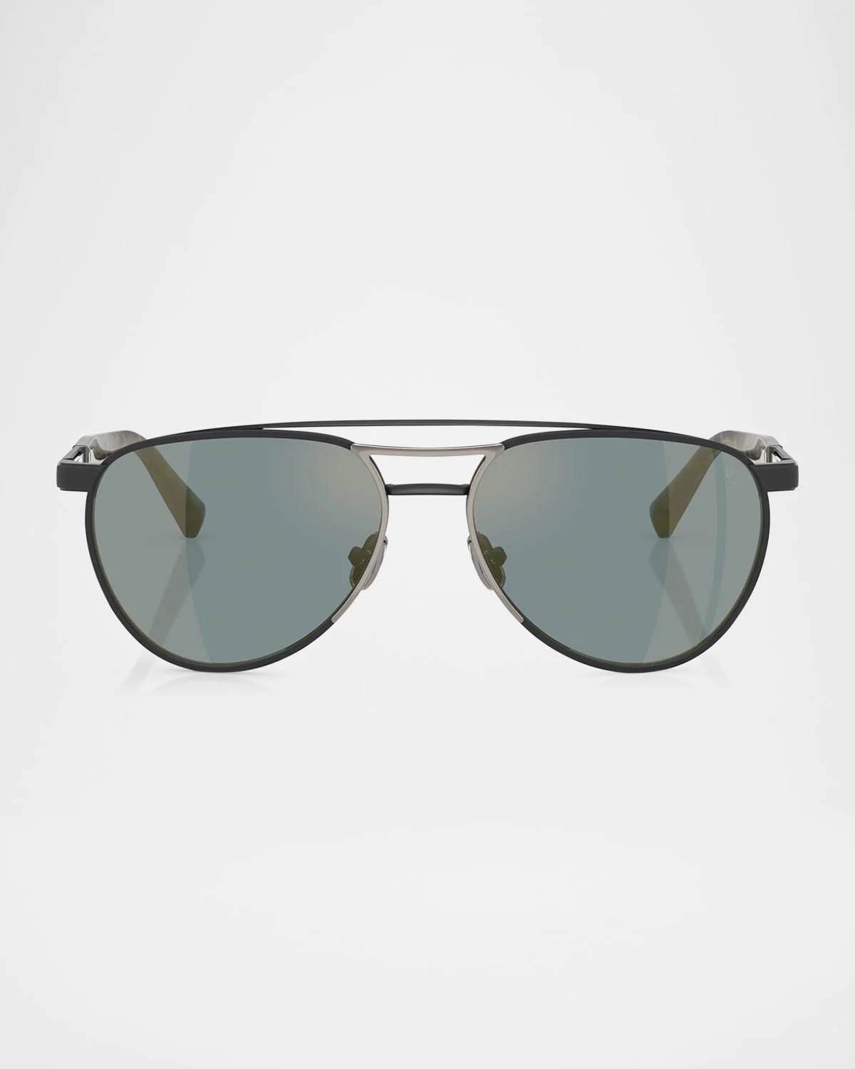 - The Brunello Cucinelli sartorial sunset collection brings a luxurious twist to classic pilot styles, highlighted by custom acetate inserts on the double bridge and temples. Each pair is adorned with bespoke nose pads and engraved metal rims, plus contrasting metal plaques on the inside of the temples. Select styles feature titanium double bridges with bi-galvanic finishes, enhancing both their structure and refined elegance. Bc2007st features a black demi matte/gunmetal color on a aviator frame with polarized blue mirror gold lenses. Each pair of sunglasses come with a cleaning cloth and case to clean and protect your sunglasses from scratches and damage. To protect your eyes from harmful uv rays, these sunglasses include lenses that are coated with 100% uv protection. - Brunello Cucinelli "BC2007ST" aviator sunglasses in titanium - Lens/bridge/temple (in mm): - 56-16-145 - Solid-color lenses - Logo script on left lens - Double-nose bridge - Adjustable nose pads - Logo on the temples - Tapered arms - Titanium - 100% UVA/UVB protection - Made in Italy - Proposition 65 warning for California residents