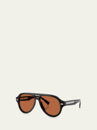 Brunello Cucinelli "BC4017S10M" aviator sunglasses in acetate Lens/bridge/temple (in mm): 57x15x145mm Solid-color lenses Double-nose bridge Exposed metal corewire Logo on the temples Acetate 100% UVA/UVB protection Made in Italy Proposition 65 warning for California residents Online Inquiries: BGS21_ND2EV| Store Inquiries: #5001888