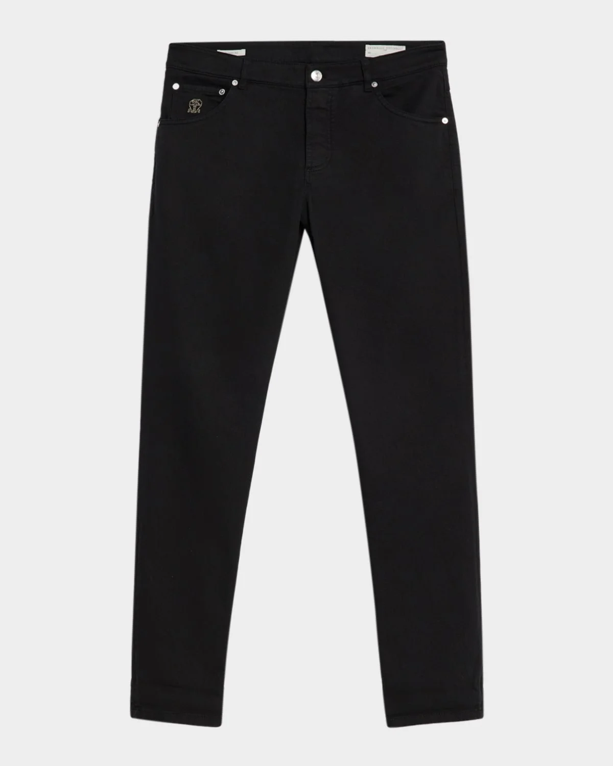 Brunello Cucinelli pants in solid bull denim Regular rise Fivepocket style Skinny fit Full length Button/zip fly; belt loops Cotton/elastane Lining: Cotton Made in Italy