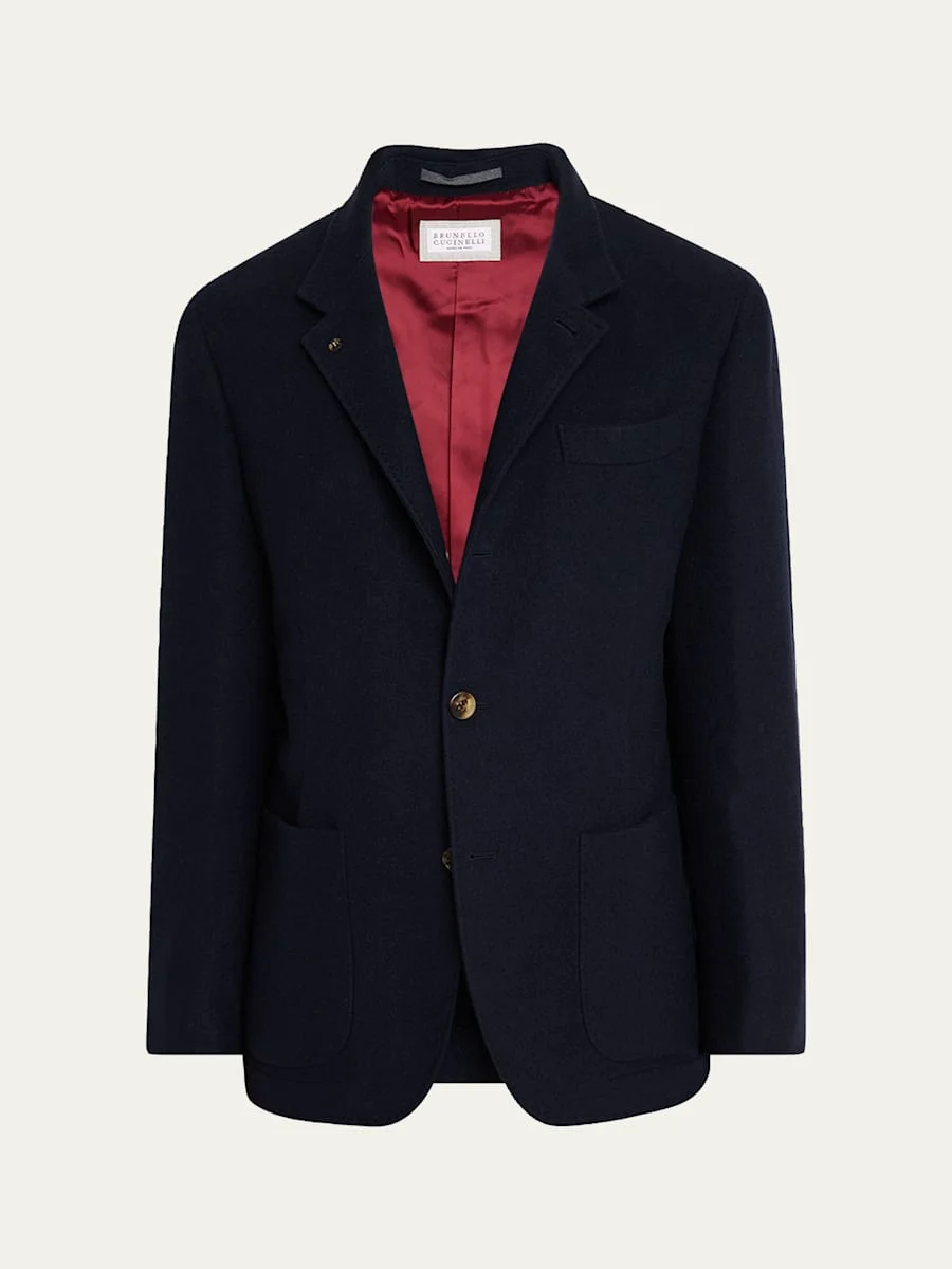The classic style of a sport coat gets a warm touch with this Brunello Cucinelli cashmere coat. Note the blazerinspired details along with the lush cashmere composition. Notched collar Long sleeves; button cuffs Button closure Chest welt pocket Lower patch pockets Two interior pockets Double back vent Cashmere Dry clean Made in Italy