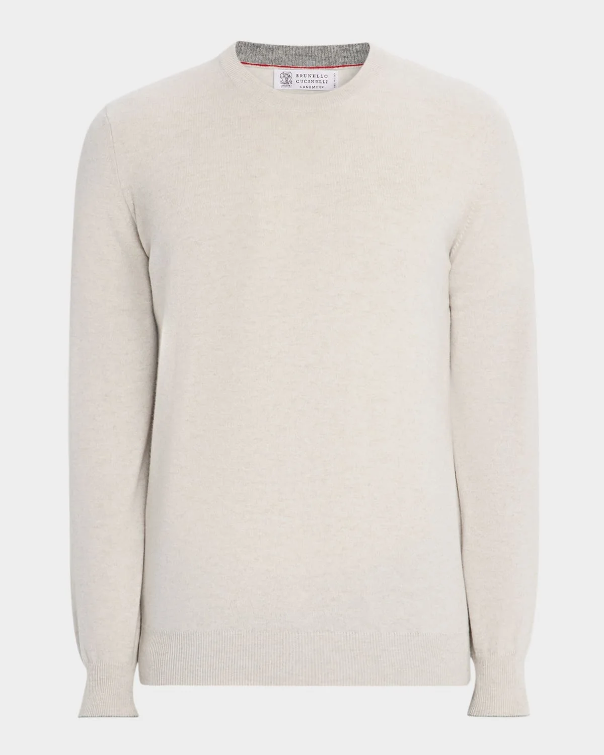 - Brunello Cucinelli solid sweater in cashmere revealing a soft and sumptuous handfeel - Crew neckline - Long sleeves - Ribbed cuffs and hem - Classic fit - Pullover style - Cashmere - Unlined - Dry clean - Made in Italy