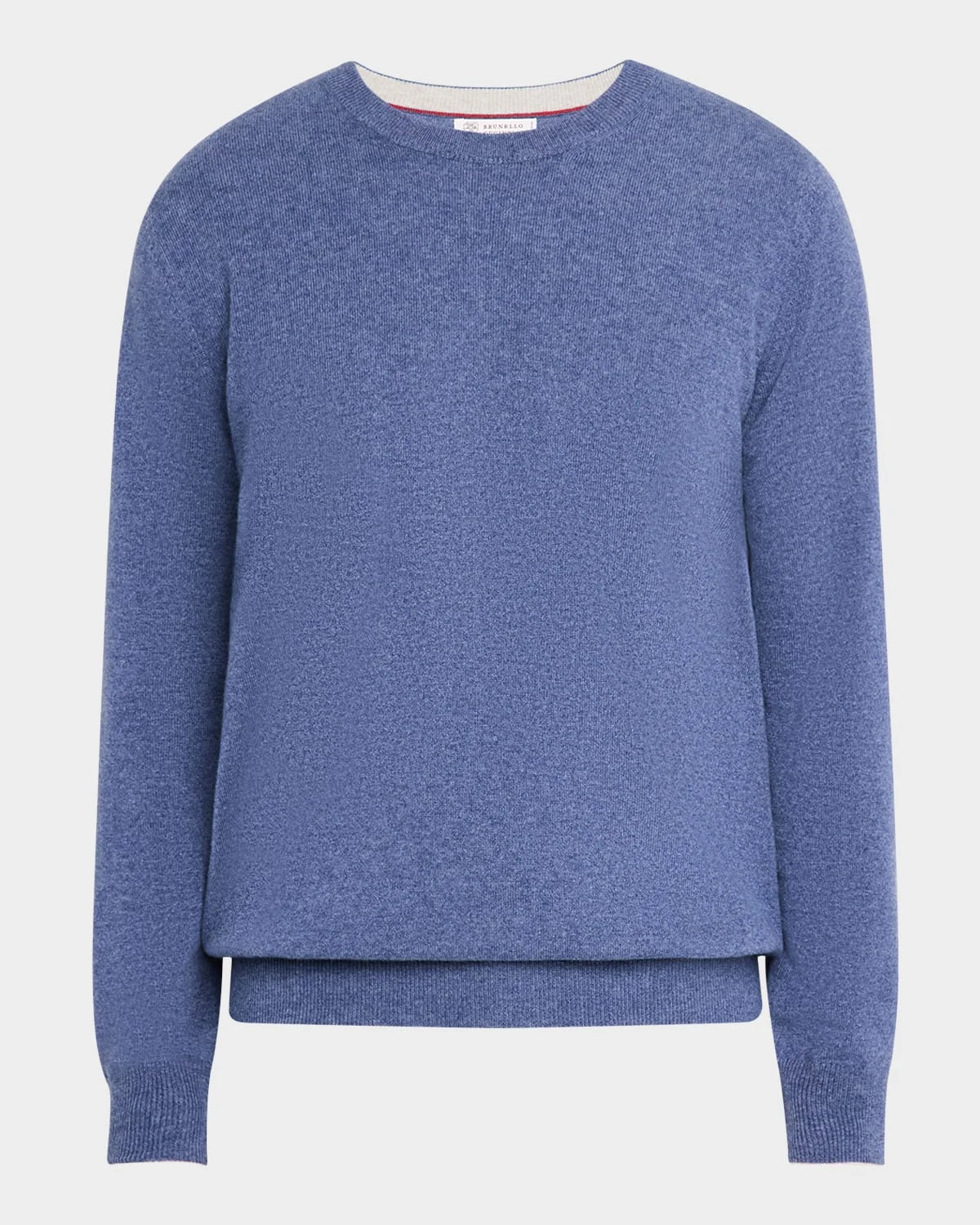 - Brunello Cucinelli pullover sweater in cashmere - Crew neckline - Long sleeves - Ribbed cuffs and hem - Pullover style - Cashmere - Unlined - Dry clean - Made in Italy