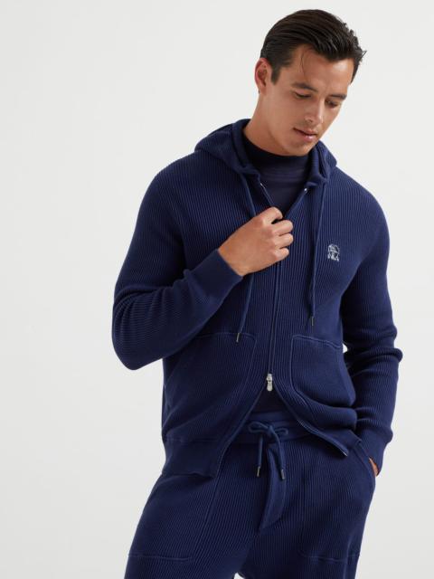 Cotton English rib knit hooded sweatshirt with logo and zipper