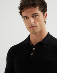 Lightweight and cozy, Brunello Cucinelli knitwear enhances the essential look of this long sleeve polo with refined yarns and workmanship. The pure cotton garment is enriched with a honeycomb texture that creates a sense of movement and a three-dimensional effect. The fit offers regular proportions, completed by the shirt collar with horn buttons. MATERIALS Manufacturing of the pure cotton yarn enhances the qualities of the natural fibers and makes the garment lightweight and comfortable to wear. DETAILS Rib knit collar with button opening Patch chest pocket Regular shoulder Rib knit cuffs and bottom band Special workmanship 100% COTTON
