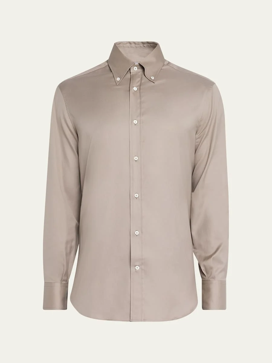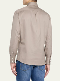 Brunello Cucinelli casual button-down shirt in piece dyed cotton twill Button-down collar Button placket Long sleeves Double-button cuffs Pleated back yoke Curved hem Modern fit Cotton Lining: Cotton Dry clean, machine wash cold Made in Italy Online Inquiries: BGS21_NCQ4U| Store Inquiries: #4927092