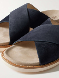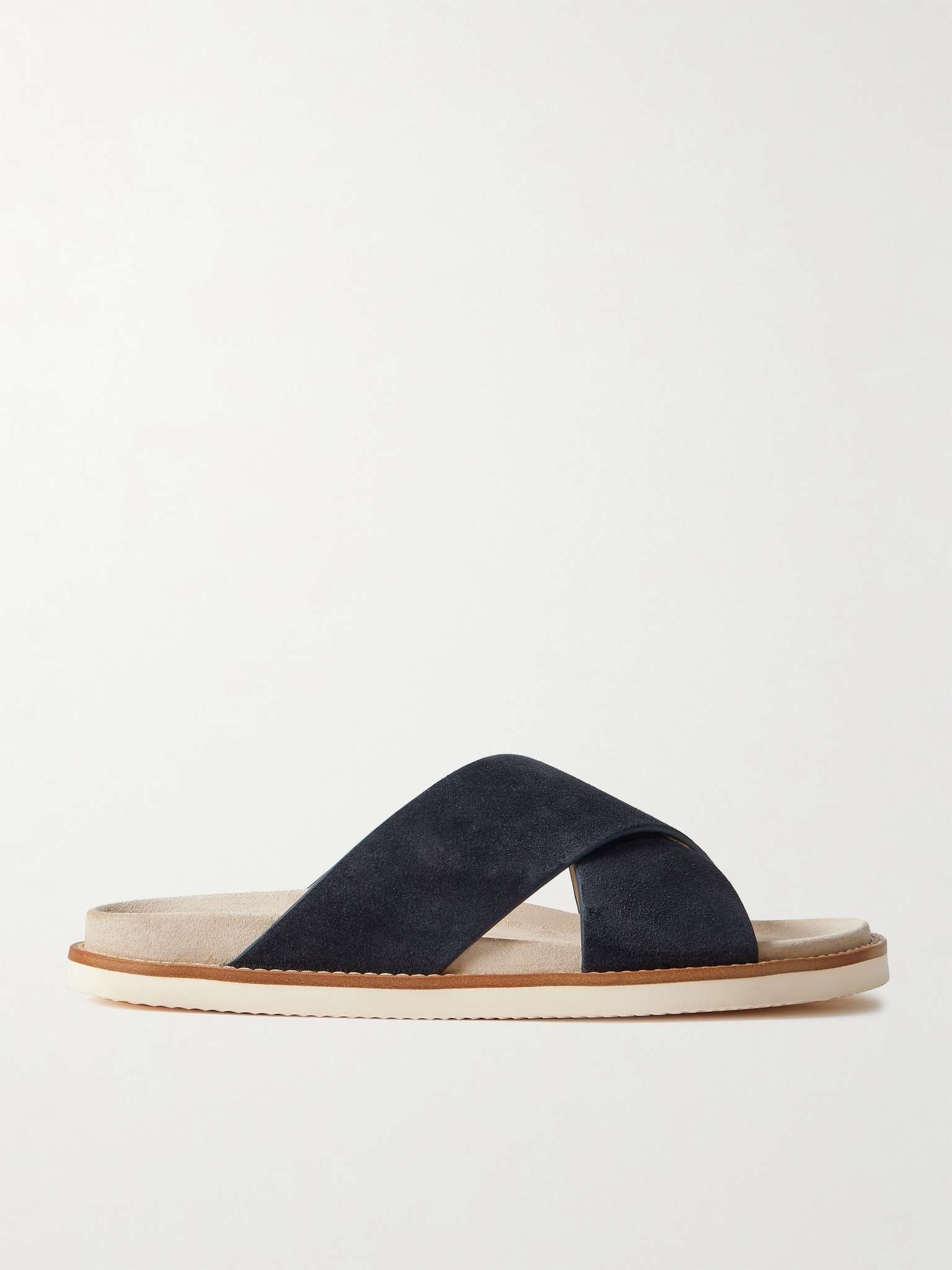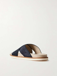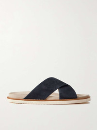 All of Brunello Cucinelli’s collections are crafted in Italy using premium materials and keen attention to detail. Made from smooth suede, these slides have thick crossover straps and comfortable moulded footbeds. Size & Fit - Fits true to size. Take your normal size - Only available in full sizes, go up to the nearest whole size if you take a half size - European sizing Details & Care - Navy suede (Calf)