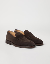 A timeless style of casual elegance, these penny loafers are enriched with refined Brunello Cucinelli materials. The velvety texture of suede enhances the informal look of the footwear, while its light, thin structure provides maximum comfort for the entire day. MATERIALS The lightweight suede is a refined leather with a thin, extremely soft texture. The leather lining and rubber outsole complete the footwear. DETAILS Leather lining Natural rubber outsole REAL LEATHER