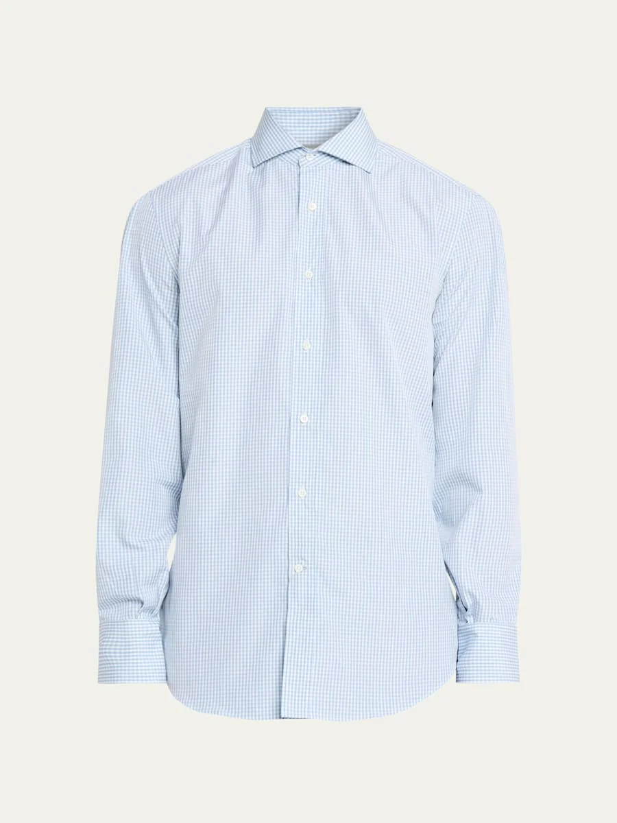 Brunello Cucinelli modernizes this woven shirt in vibrant gingham check Spread collar; button front Long sleeves Close-fitting lines through the chest characterize the slim fit Shirttail hem Cotton Made in Italy Online Inquiries: BGS21_NDGLA| Store Inquiries: #5039587