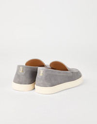 The unmistakable style of the loafer inspires a modern reinterpretation of the sneaker. The casual yet elegant look of suede enhances this footwear’s classic shape, while its lightweight construction and natural latex outsole provide added comfort. MATERIALS The refined suede is characterized by a classic velvety hand that enhances its casual feel. A leather lining and a natural latex bottom provide added comfort. DETAILS Leather lining Rubber outsole REAL LEATHER