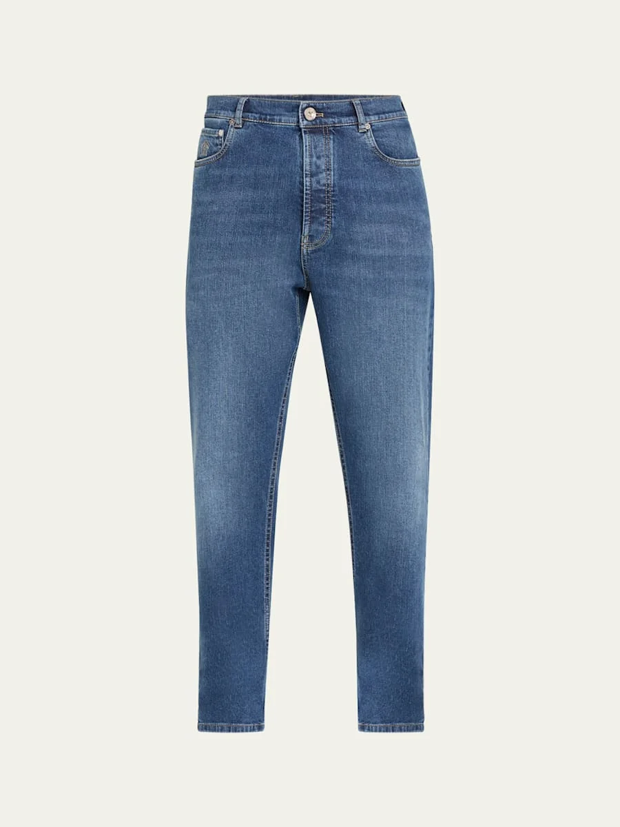 Brunello Cucinelli jeans in cotton denim with subtle fading Regular rise Flat front Fivepocket style Slim legs Full length Buttonzip front; belt loops Classic fit through the hips and thighs Cotton Lining: Cotton Made in Italy