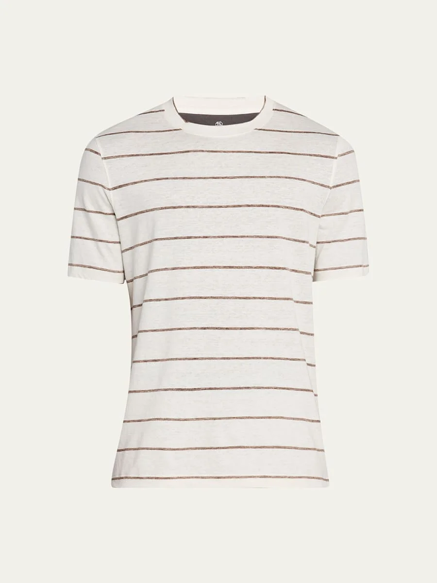 Men's Linen-Cotton Stripe Crewneck T-Shirt