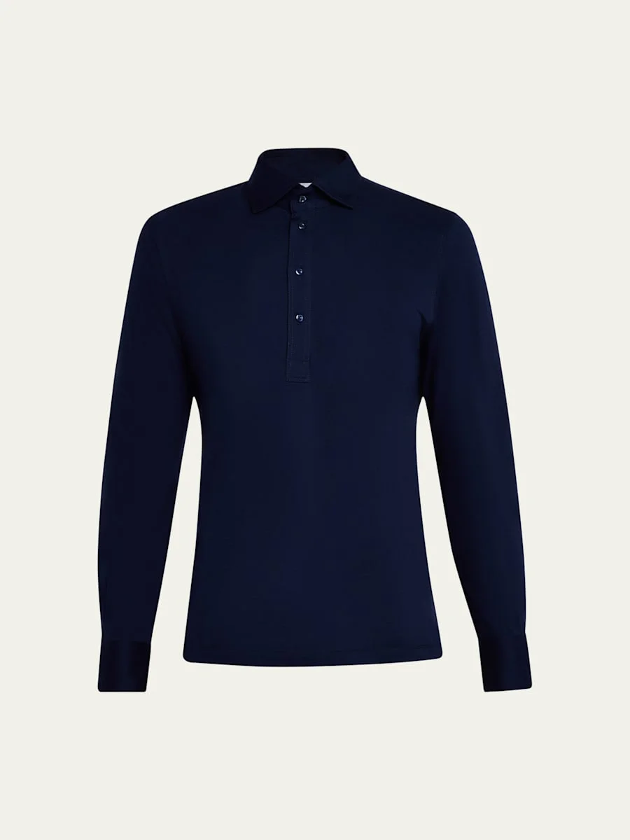 Brunello Cucinelli polo shirt in cotton pique Spread collar Fourbutton placket Long sleeves Round barrel cuffs Straight hem Vented sides Pullover style Cotton Made in Italy