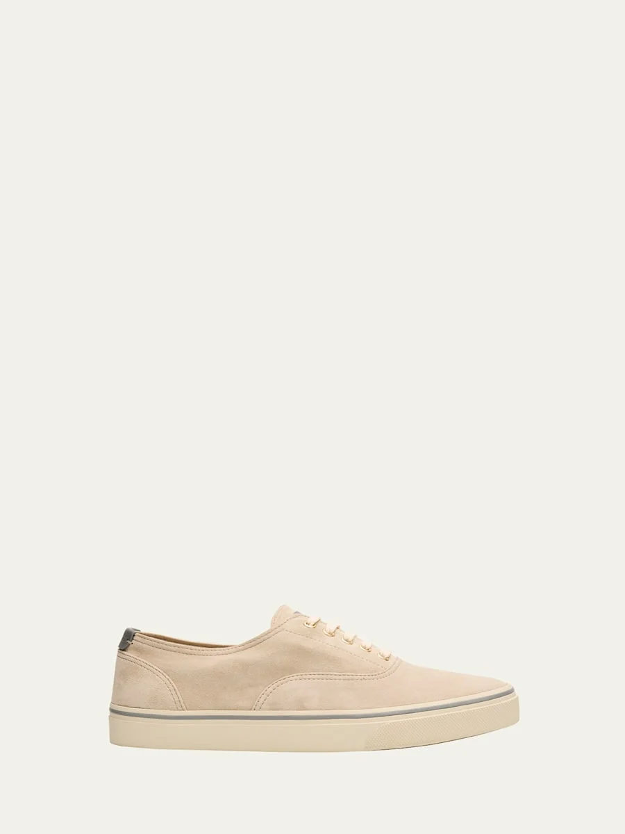 Brunello Cucinelli low-top sneakers in suede Flat heel Round toe Lace-up vamp Tongue with leather logo patch Branded footbed Vulcanized rubber sole Made in Italy Online Inquiries: BGS21_ND3X2| Store Inquiries: #5021430