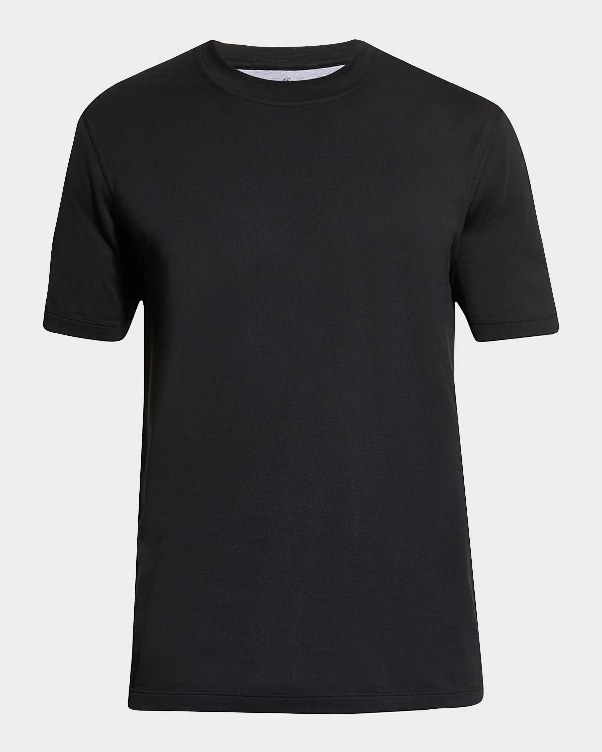 - Brunello Cucinelli marled T-shirt - Approx. 29"L from shoulder to hem - Crew neckline - Short sleeves; approx. 18"L - Vented hem - Pullover style - Cotton - Made in Italy - Model is 6'1"/185cm.