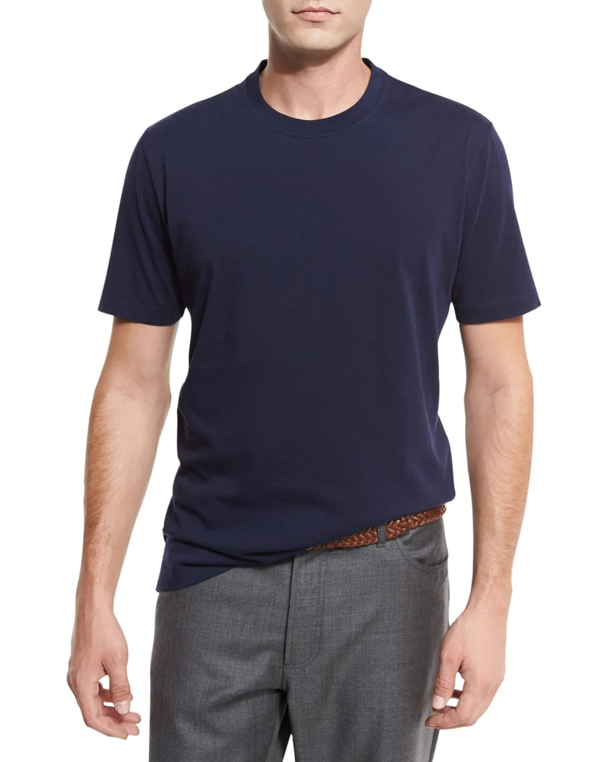 - Brunello Cucinelli marled T-shirt - Approx. 29"L from shoulder to hem - Crew neckline - Short sleeves; approx. 18"L - Vented hem - Pullover style - Cotton - Made in Italy - Model is 6'1"/185cm.