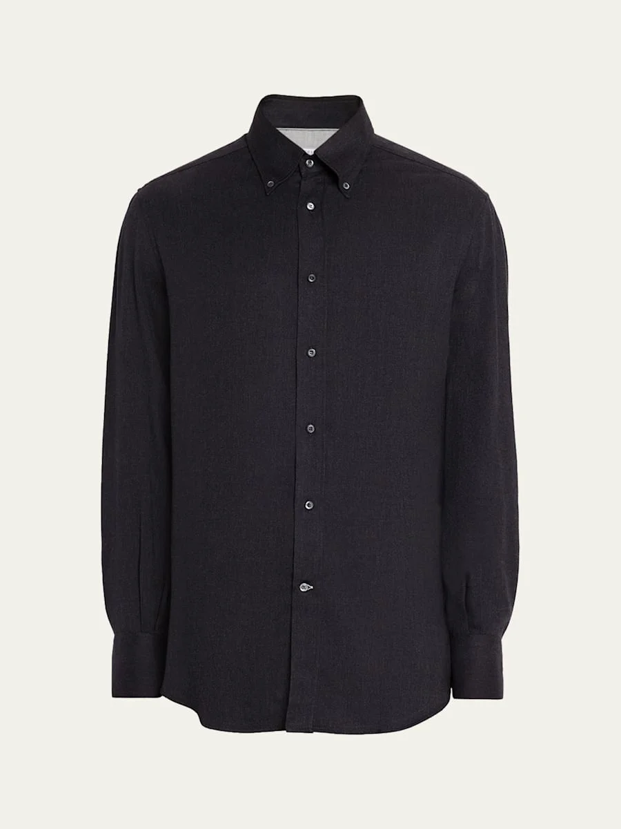 Brunello Cucinelli sport shirt in a comfortable chevron woven cotton blend Genuine motherofpearl buttons Buttondown collar Button placket Long sleeves Doublebutton cuffs Pleated back yoke Curved hem Cotton/lyocell Lining: Cotton Dry clean, machine wash line dry Made in Italy