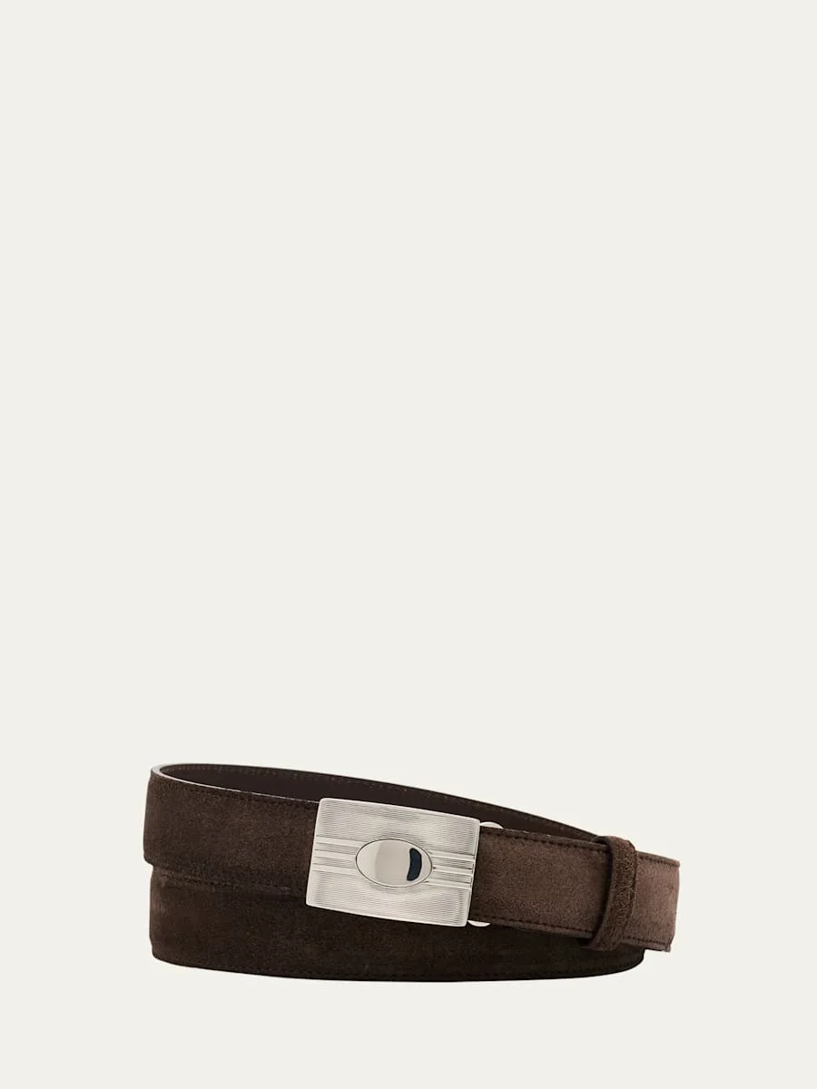 Brunello Cucinelli belt in suede Approx. 1.0"W Rectangular silvertone buckle Suede belt loop Adjustable fit Leather Made in Italy Online Inquiries: BGS21_NCDVK| Store Inquiries: #4863460