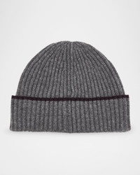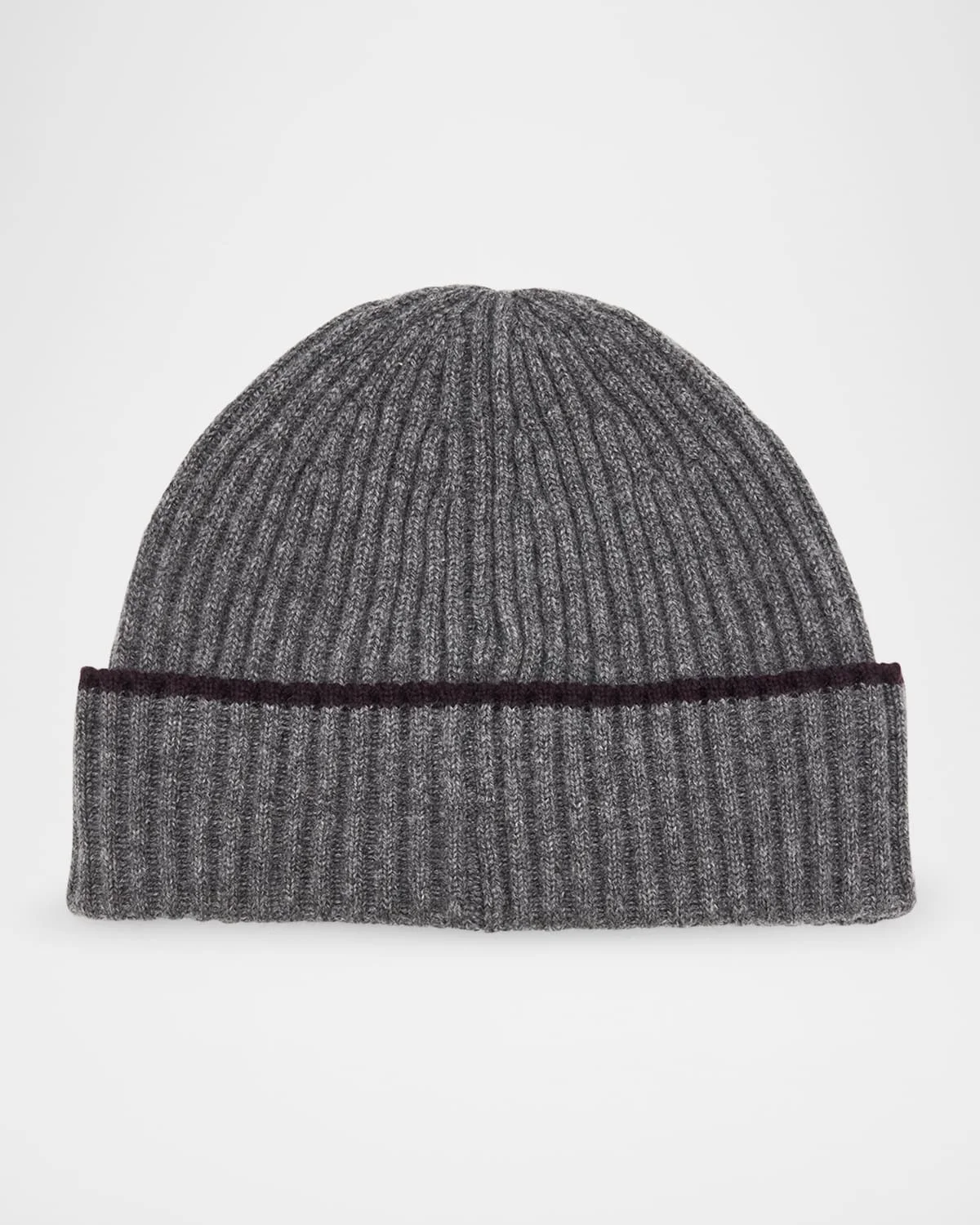 Brunello Cucinelli ribbed beanie hat in ultrasoft cashmere, accented with contrast tipping Cashmere Hand wash or dry clean Made in Italy