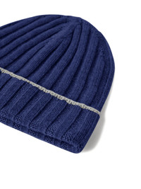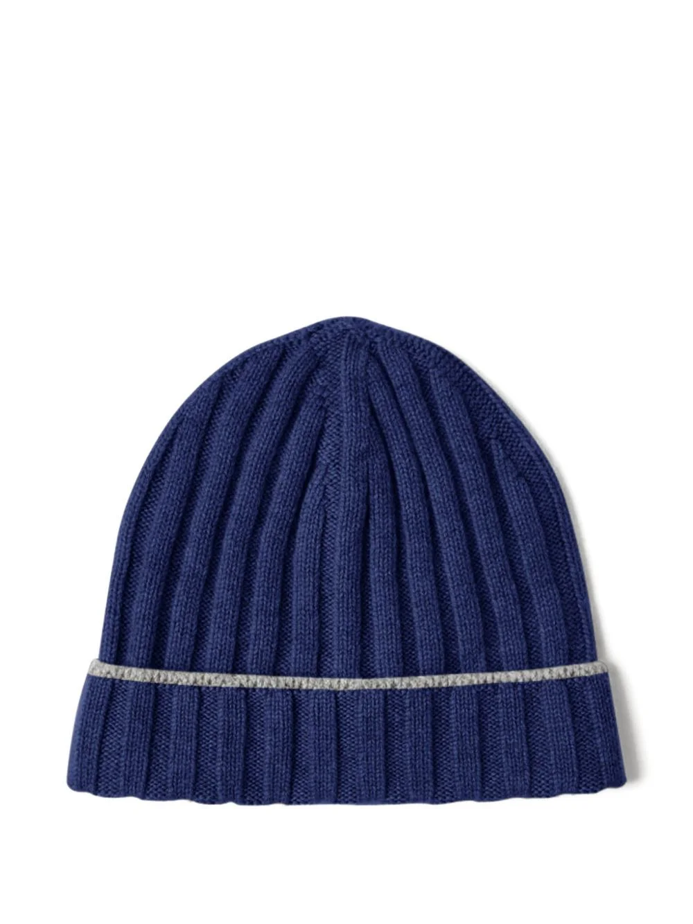 ribbed cashmere beanie Highlights - Dark blue - Cashmere - Ribbed texture - Grey trim - Folded brim Imported Composition Cashmere 100% Washing instructions Read Manufacturer Guidelines