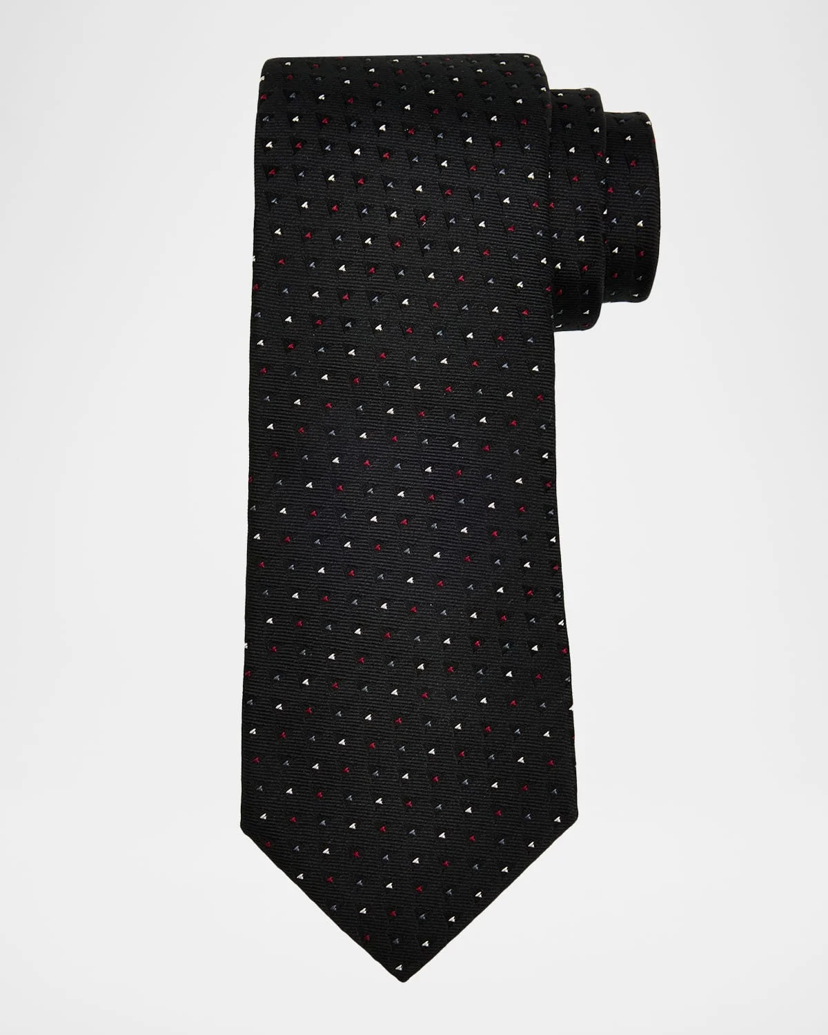 This tie by Brunello Cucinelli features an allover pattern of colorful microtriangles on larger black triangles Selftie style Silk Dry clean Made in Italy