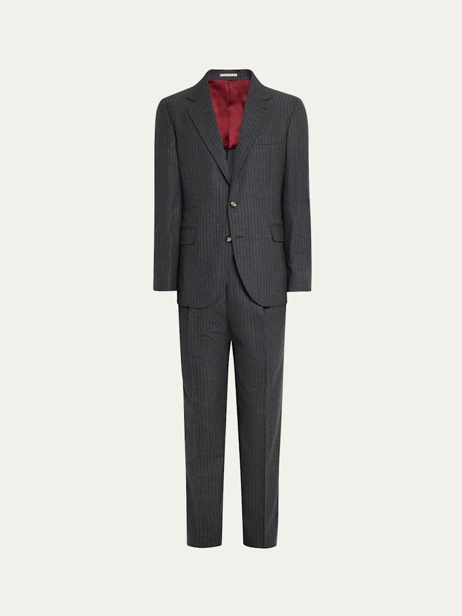 Brunello Cucinelli sport jacket in virgin wool, stylized with subtle vertical chalk stripes Notch lapels Singlebreasted front Barchetta chest pocket Flap pockets; ticket pocket Internal breast pocket Doublevented back Virgin wool Made in Italy