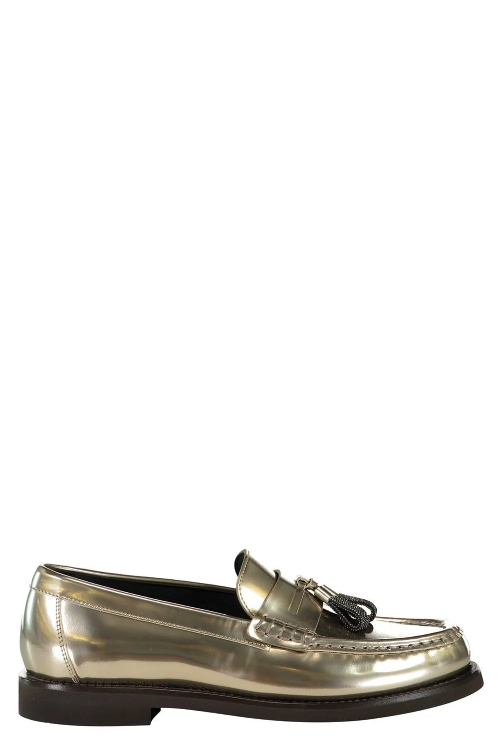 DETAILS AND INSIGHT Brunello Cucinelli metallic sparkling loafer in gold. Leather Made in IT Style MZSPG2739-C9124
