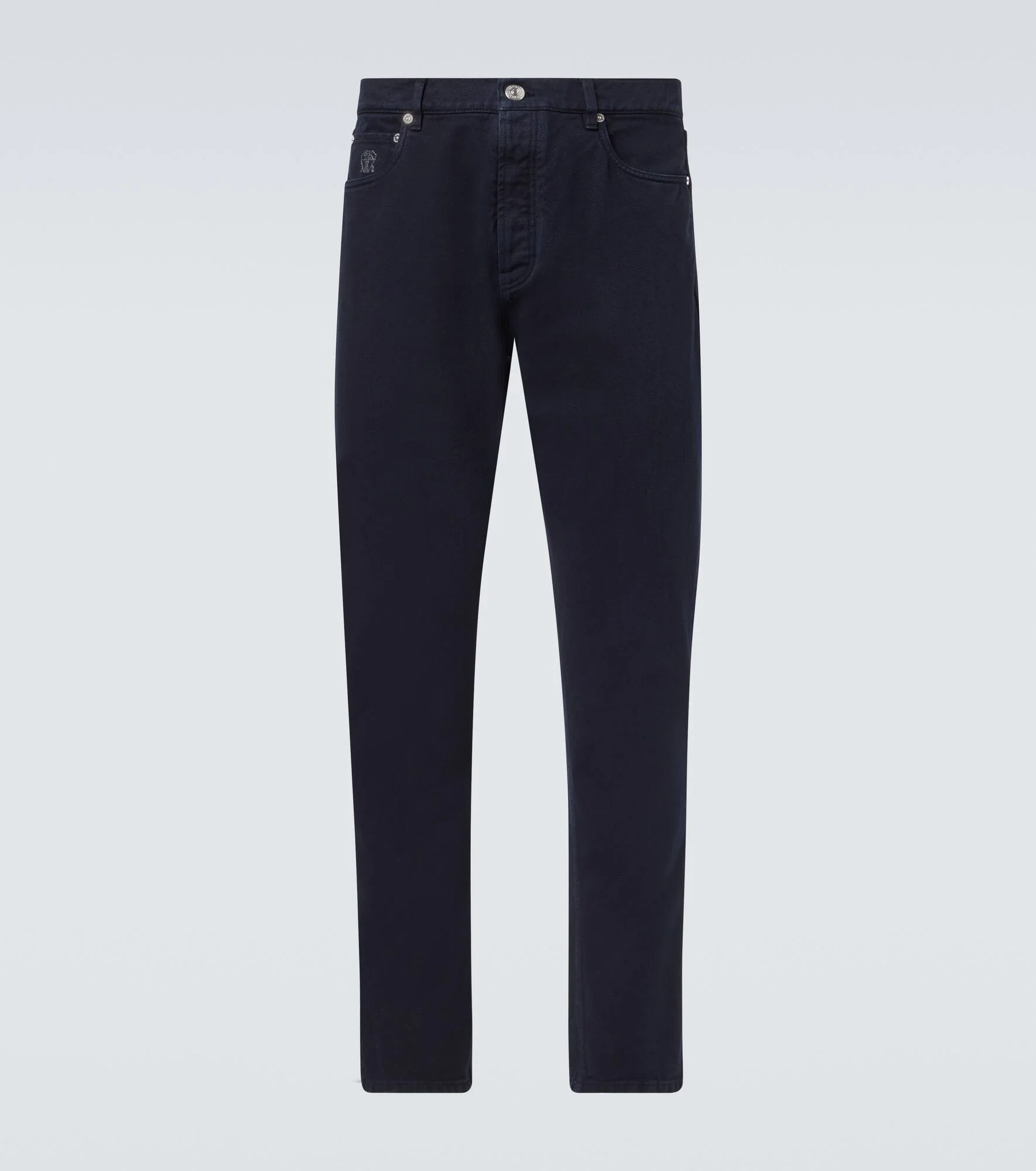 Brunello Cucinelli's designs are created in Solomeo, a medieval hamlet whose art and traditions are woven into the house's every fiber. These jeans are cut to a straight silhouette with a mid-rise waistline. Product Details - Material: 100% cotton - Care instructions: machine wash at 30 degrees - Made in Italy - Designer color name: Navy - Item color: blue - Belt loops - Pockets: five pockets - Item number: P01138497 Size & Fit - True to size - Non-stretchy fabric - Straight leg - Mid-rise - The model in the picture is 185cm-6'1" and wearing a size 50