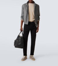 Brunello Cucinelli's designs are created in Solomeo, a medieval hamlet whose art and traditions are woven into the house's every fiber. These jeans are cut to a straight silhouette with a mid-rise waistline. Product Details - Material: 100% cotton - Care instructions: machine wash at 30 degrees - Made in Italy - Designer color name: Nero - Item color: black - Lining: 100% cotton - Lining II: 58% cotton, 42% polyester - Details: 100% leather - Contains non-textile parts of animal origin - Belt loops - Pockets: five pockets - Closure: concealed button placket - Item number: P01138499 Size & Fit - True to size - Non-stretchy fabric - Straight leg - Mid-rise - The model in the picture is 185cm-6'1" and wearing a size 50