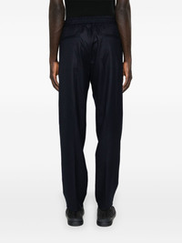 mid-rise tapered trousers Highlights - Navy blue - Virgin wool - Interlock twill weave - Pleat detailing - Pressed crease - Mid-rise - Concealed front fastening - Elasticated drawstring waistband - Two side slit pockets - Two rear welt pockets - Tapered leg Made in Italy Composition Lining: Viscose 100%, Cotton 100%, Acetate 60%, Cupro 40% Outer: Virgin Wool 100% SIZE & FIT Model measurements Height 6 ft 2 in(1.87 m) Bust/Chest 36.41 in(92.5 cm) Hips 37 in(94 cm) Waist 29.52 in(75 cm) FittingInformation Designed for a tapered leg, offering a loose unrestricted fit over the leg with a closer fit towards the ankle The elasticated waist allows for a comfortable fit Made from a midweight non-stretch fabric This piece fits true to size – take your usual size
