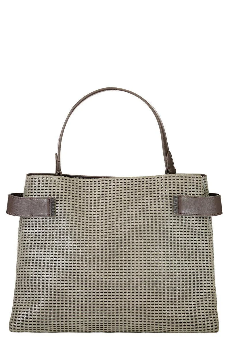 DETAILS AND INSIGHT Brunello Cucinelli mini drill tote - chestnut in chestnut. Fits Iphone Laminated & Perforated Leather Made In Italy Style MBDGD2499-C2767