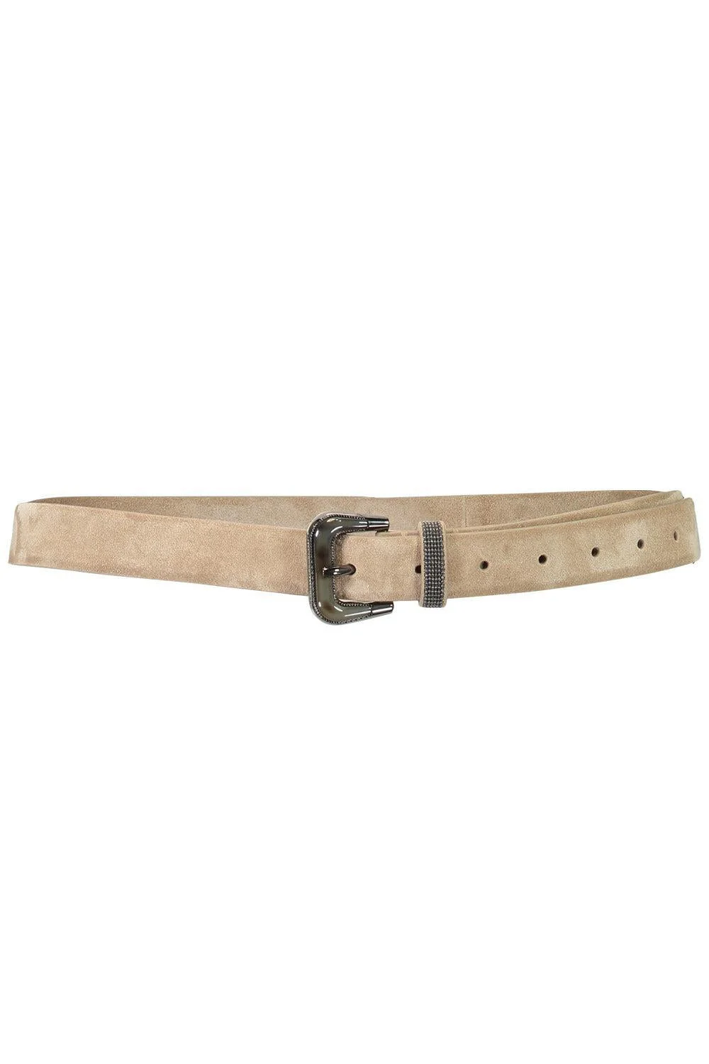 DETAILS AND INSIGHT Brunello Cucinelli mini horn frame belt in chestnut. Suede Made in Italy Style M0DELC297-C2767