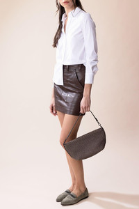 DETAILS AND INSIGHT Brunello Cucinelli monili trim stretch shirt in bianco. 72% COTTON, 23% NYLON, 5% ELASTANE; Nickel Free Monili Machine Wash Cold Made in IT Style M0091MA606-C159
