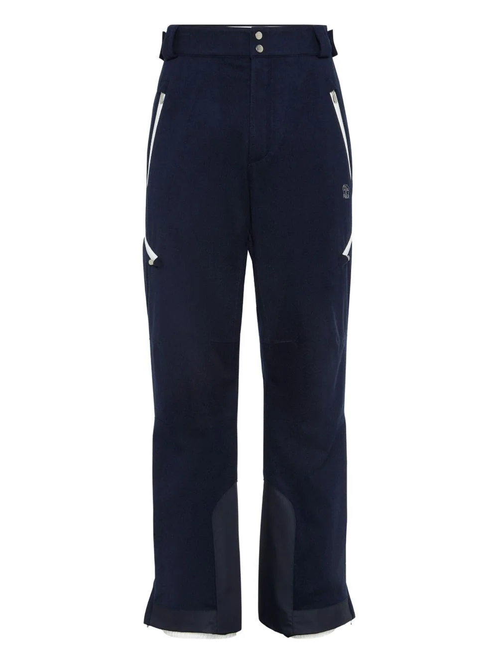 Mountain padding contrast side-zip trousers Highlights - Navy blue - Wool fabric - Side-zip detailing - White-zip trims - Lower-panel inserts - Button fastening Made in Italy Composition Wool 100% Washing instructions Read Manufacturer Guidelines