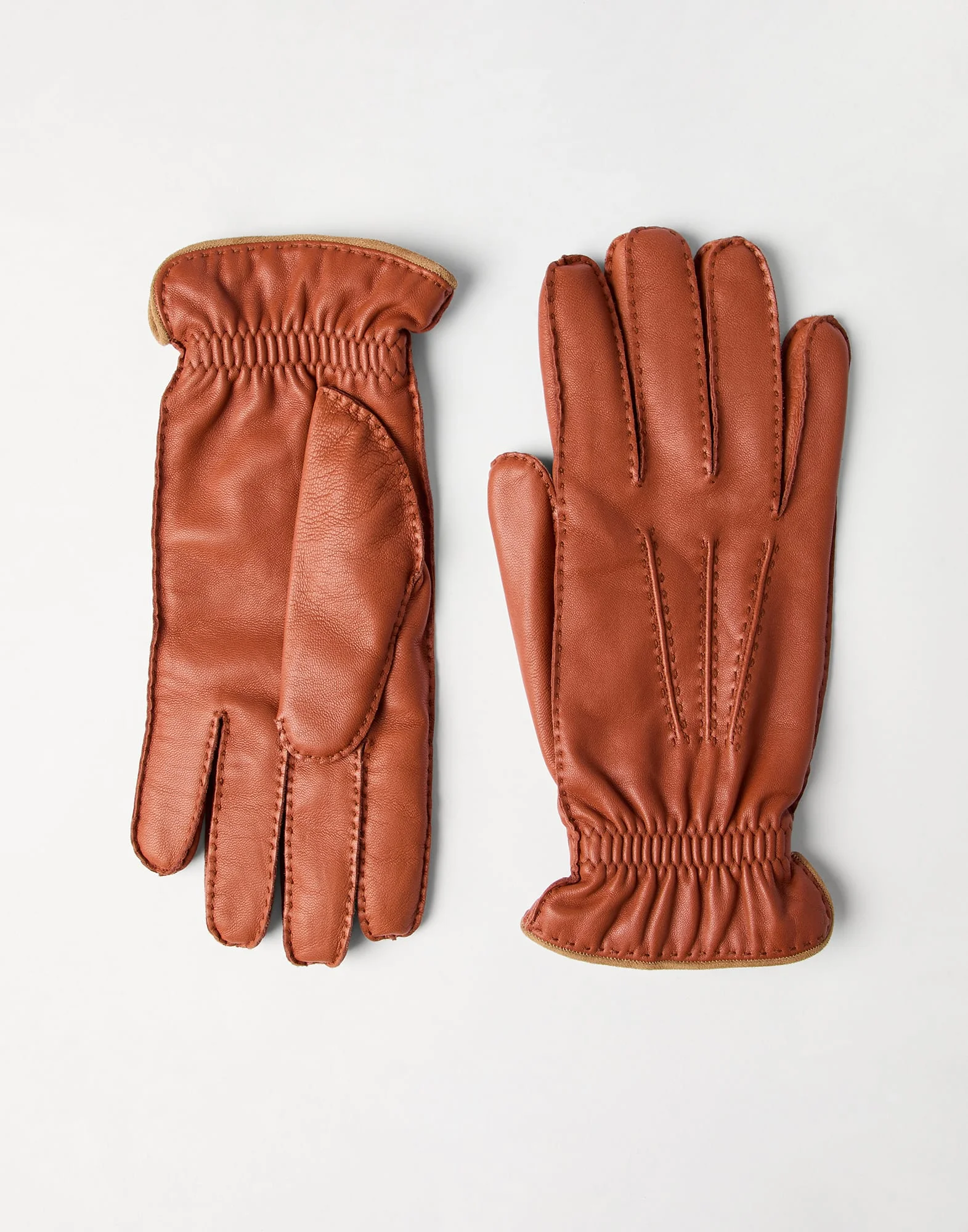 Refined materials and workmanship enrich the essential, classic silhouette of these nappa leather gloves with soft cashmere lining. The thin leather enhances the season’s delicate colors with a smooth, polished texture and ensures a functional, comfortable fit, completed by the elastic at the wrist. MATERIALS Ultra soft and thin, the refined nappa leather is characterized by a smooth hand with an extremely fine grain. DETAILS Elasticized trim REAL LEATHER