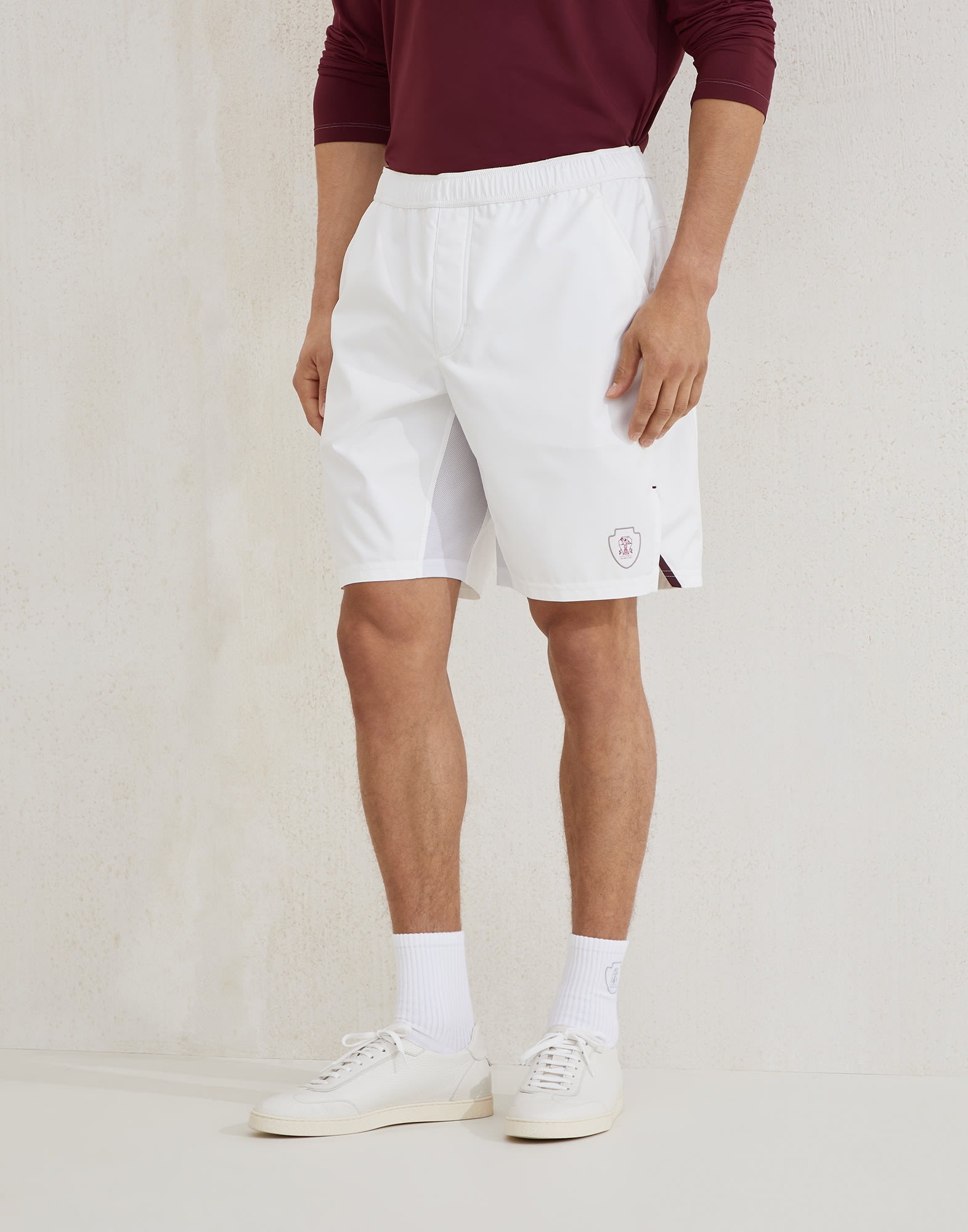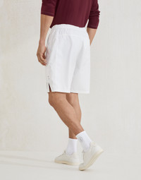 The sporty yet elegant feel of the world of Tennis inspires a selection of creations that enrich the Menswear collection. The classic, essential style of these nylon Bermuda shorts is paired with the functional characteristics of the fabric and casual details such as the elastic waistband for an elegant mix of inspiration. The regular silhouette is completed by the iconic logo detail. MATERIALS Nylon is a light, versatile material: glossy with a slightly crisp hand, it is ideal to wear during the transitional seasons. DETAILS Elastic waistband with drawstring Slanted front pockets Back welt pocket with button Bottom with vents 93% POLYESTER, 7% POLYURETHANE